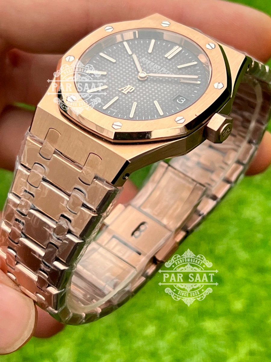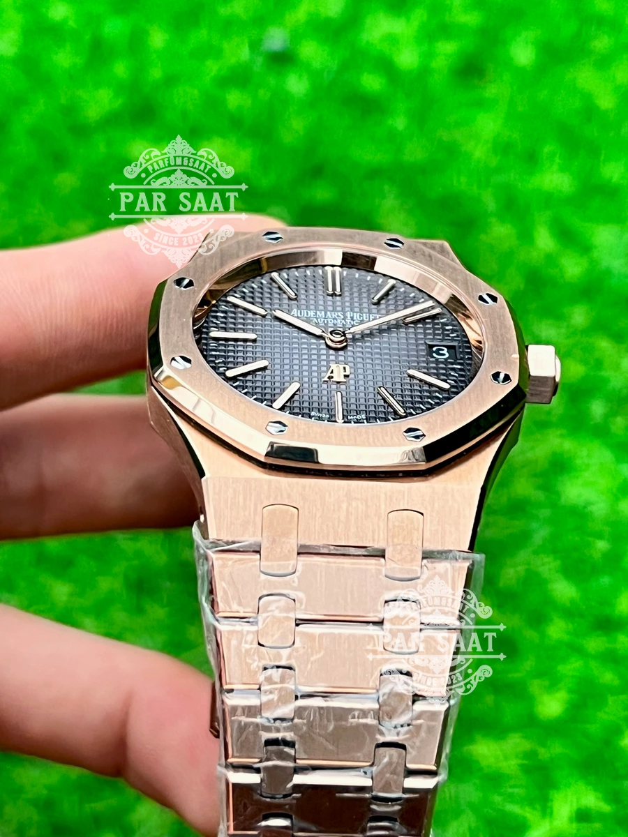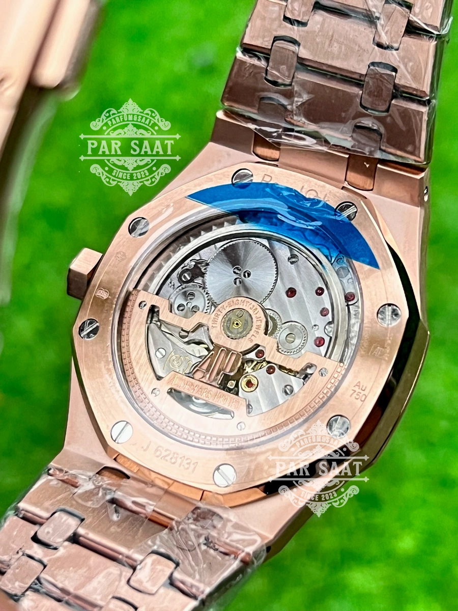 Lüks saatçiliğin en prestijli modellerinden biri olan Audemars Piguet Royal Oak 15202OR, zamansız tasarım anlayışı ve mükemmel işçiliği ile saat tutkunlarının gözdesi olmaya devam ediyor. 39 mm çapındaki 18K gül altın kasa ve bileziği, bu modeli hem klasik hem de modern bir başyapıt haline getiriyor.