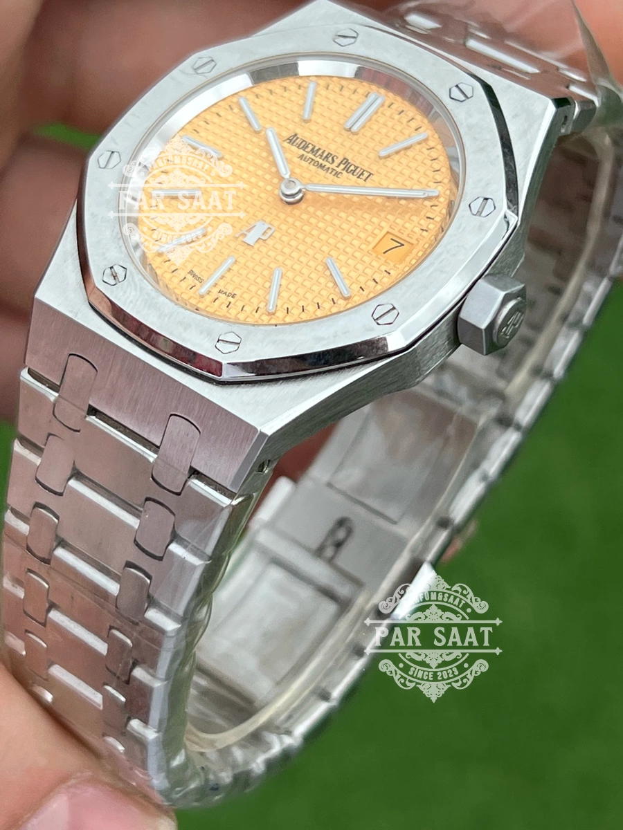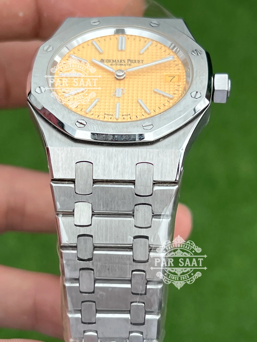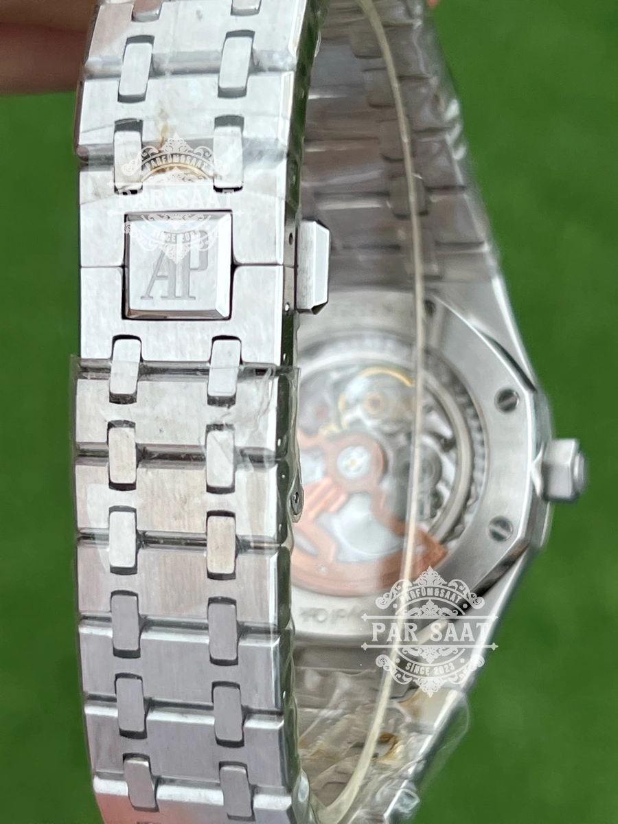 Lüks saatçiliğin en prestijli modellerinden biri olan Audemars Piguet Royal Oak 15202BC, zamansız tasarım anlayışı ve mükemmel işçiliği ile saat tutkunlarının gözdesi olmaya devam ediyor. 39 mm çapındaki 18K altın kasa ve bileziği, bu modeli hem klasik hem de modern bir başyapıt haline getiriyor.