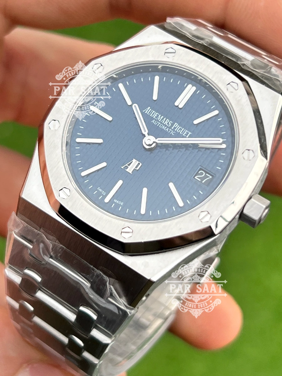 - Sekizgen Bezel: Denizci miğferlerinden ilham alan vidalı tasarım, Royal Oak’ın DNA’sını taşıyor.