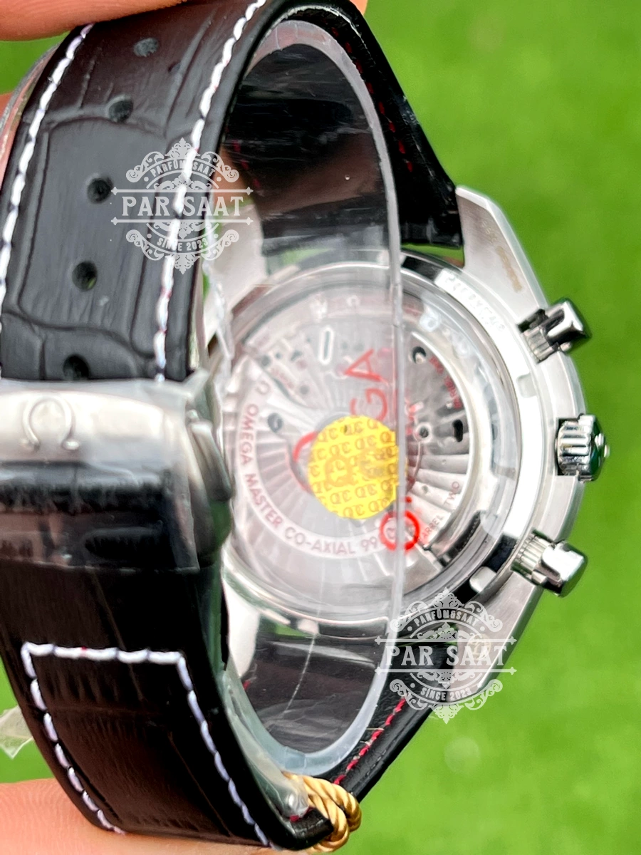 Saat tutkunlarının kalbini çalan bu Speedmaster, teknik mükemmellikle minimalist tasarımı buluşturuyor! 44.25 mm çelik kasa, sportif çizgileriyle zamana meydan okurken, siyah kadran üzerinde parlayan beyaz tachymetre ölçeği, hızı ölçmenin klasik zarafetini yansıtıyor. “Speedmaster” ve “Co-Axial Master Chronometer” yazıları, kadrana sade ama güçlü bir kimlik kazandırıyor.