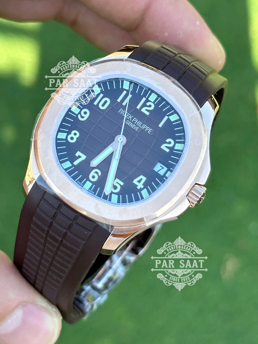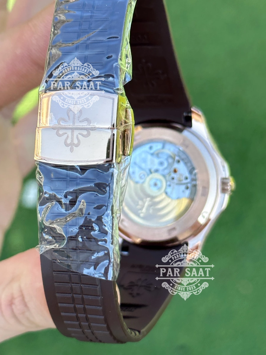 Patek Philippe 5167’nin kauçuk kayışı, saatin sportif tarzını vurgularken, bilekte rahat ve konforlu bir kullanım sağlar. Dayanıklı ve esnek yapısı, saatin her durumda mükemmel bir uyum sağlamasına olanak tanır.
