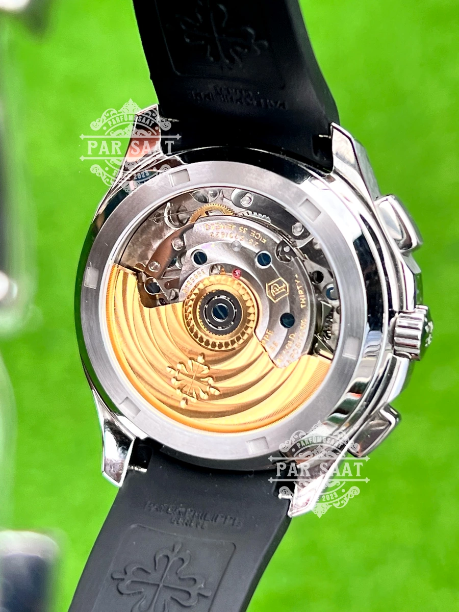 Nefes kesen tasarımı ve teknik virtüözitesiyle *Aquanaut Chronograph 5968, lüksün sınırlarını yeniden çiziyor. Paslanmaz çelik kasanın cesur 42.2 mm’si, *gradient kadran üzerinde turuncu vuruşlarla dans ederek modern bir sanat eserine dönüşüyor. Geceyi aydınlatan lüminöz detaylar ve sekizgen kasa, bu saati gündüzün maceraperesti, gecenin ise zarafet abidesi kılıyor.