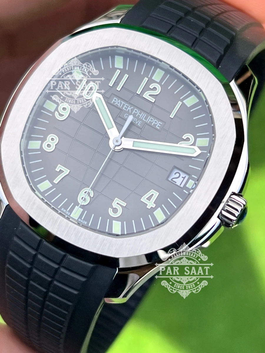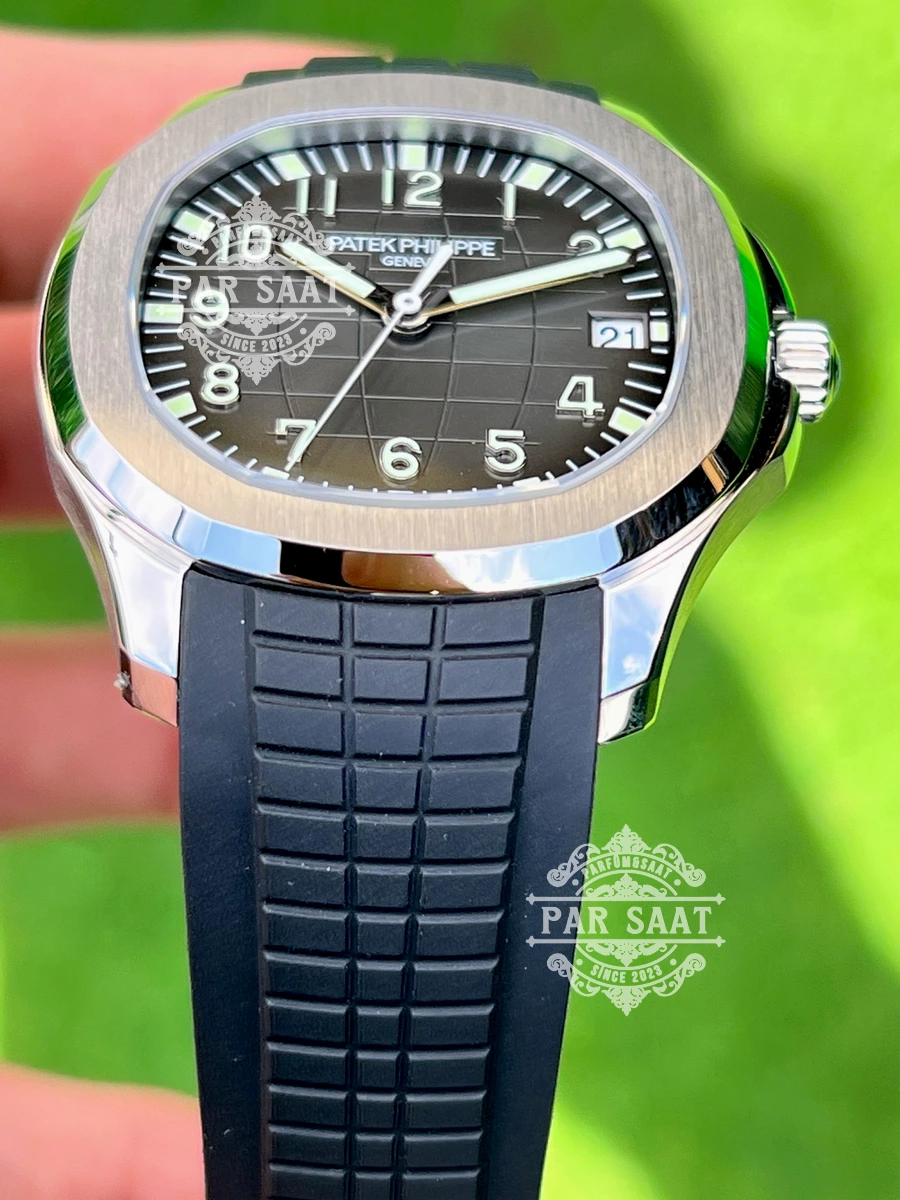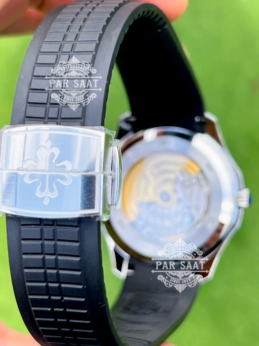 Patek Philippe 5167’nin kauçuk kayışı, saatin sportif tarzını vurgularken, bilekte rahat ve konforlu bir kullanım sağlar. Dayanıklı ve esnek yapısı, saatin her durumda mükemmel bir uyum sağlamasına olanak tanır.