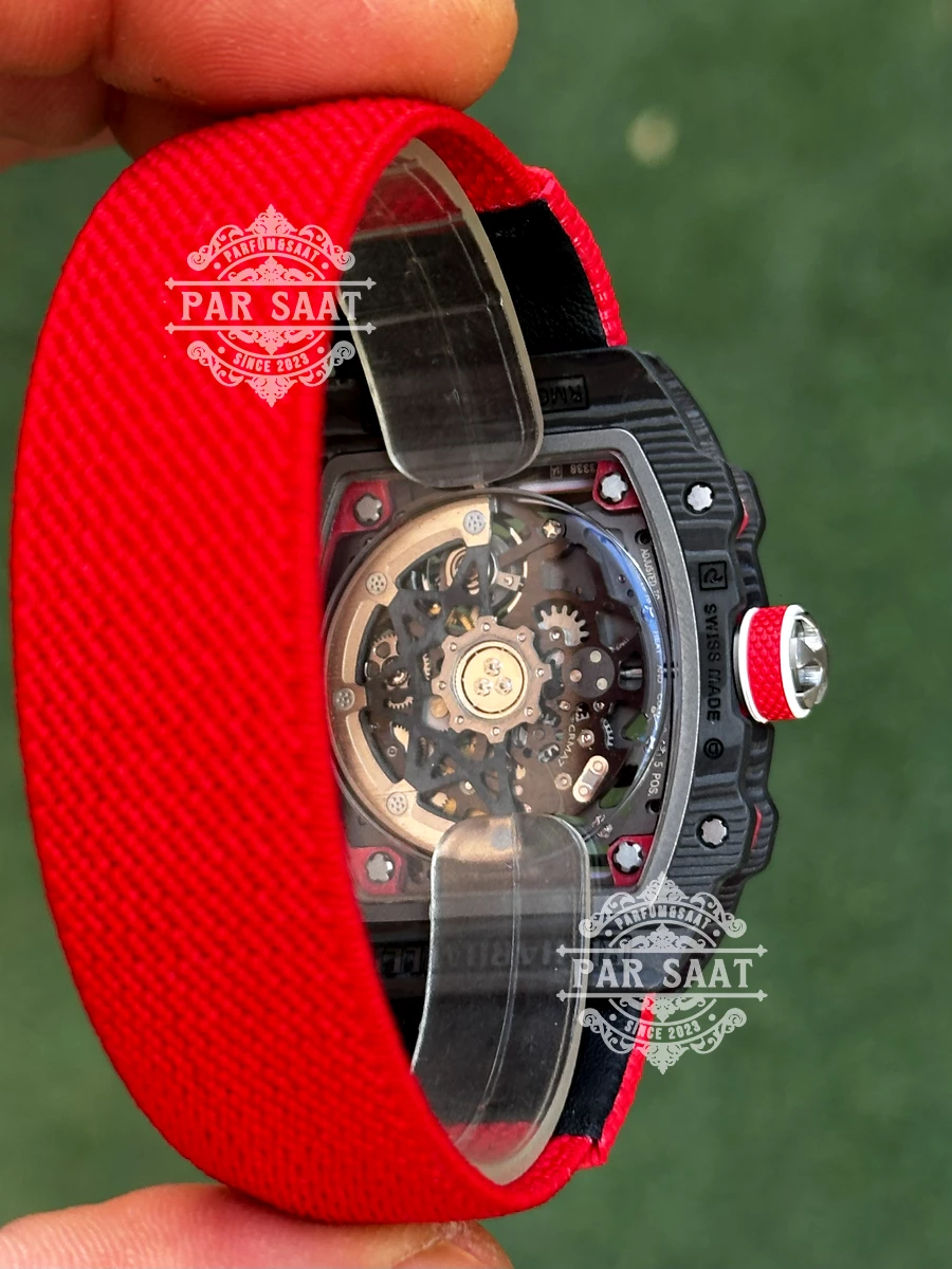 Ultra-ince 7.8 mm kalınlığıyla “dünyanın en ince spor saatlerinden biri” olan RM67-02, Carbon TPT® veya Quartz TPT® kasa malzemeleriyle hafifliği (sadece 32 gram!) ve dayanıklılığı birleştiriyor. CRMA7 otomatik kalibre mekanizma, 50 saat güç rezervi ve 28.800 vph (4 Hz) titreşim hızıyla hassasiyetin doruklarında çalışıyor. İskeletize edilmiş kadran, Grade 5 titanyum köprüler ve PVD kaplama detaylarla mekanik şiirselliği gözler önüne seriyor.