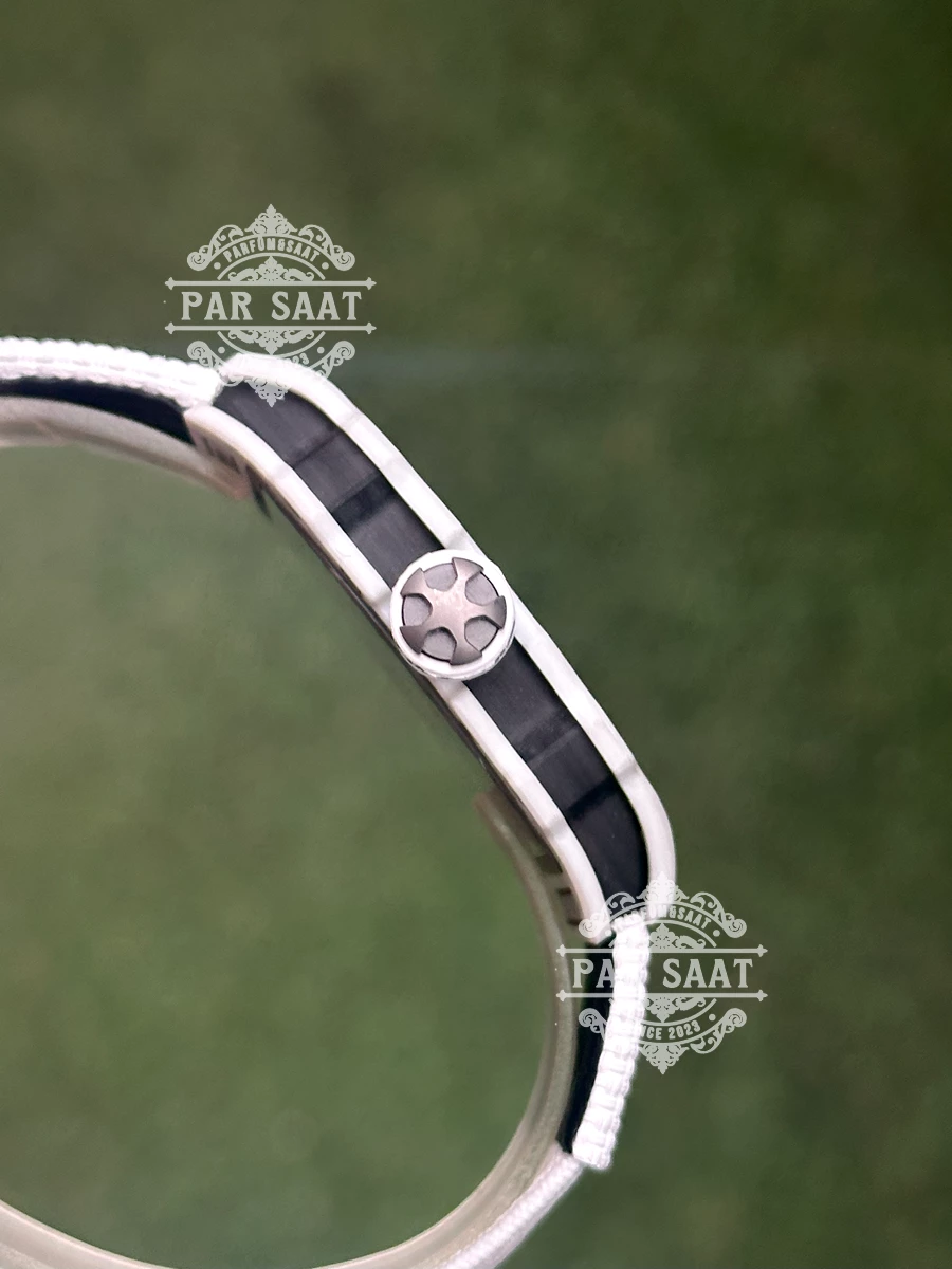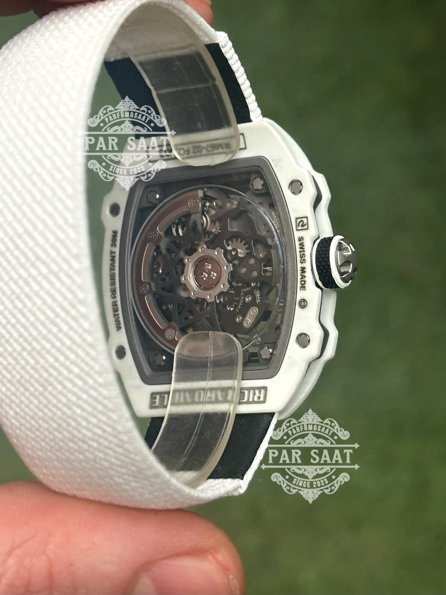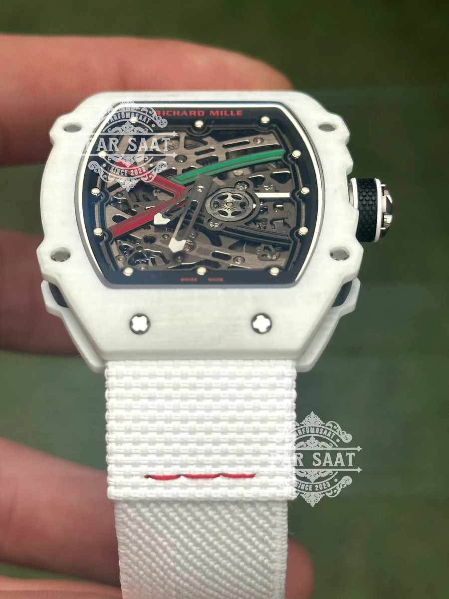 38.7 mm x 47.52 mm tono kasa, sporcu anatomisine uyum sağlayan patentli Velcro kayış ile kusursuz konfor sunarken ve şok absorbe eden tasarımıyla günlük hayatın dinamizmine meydan okuyor. Her bilekte bir sanat eseri: RM67-02, lüks ve teknolojinin süblime bir manifestosu.