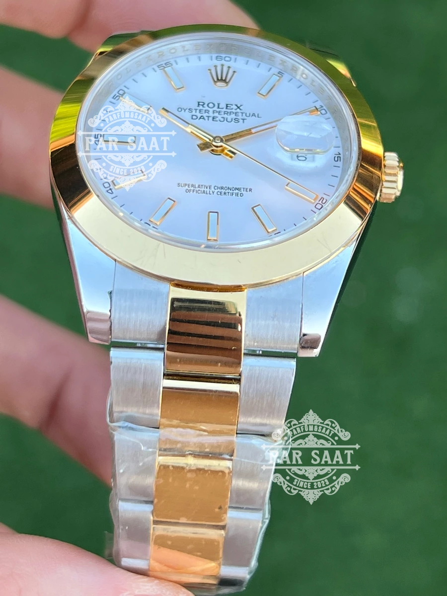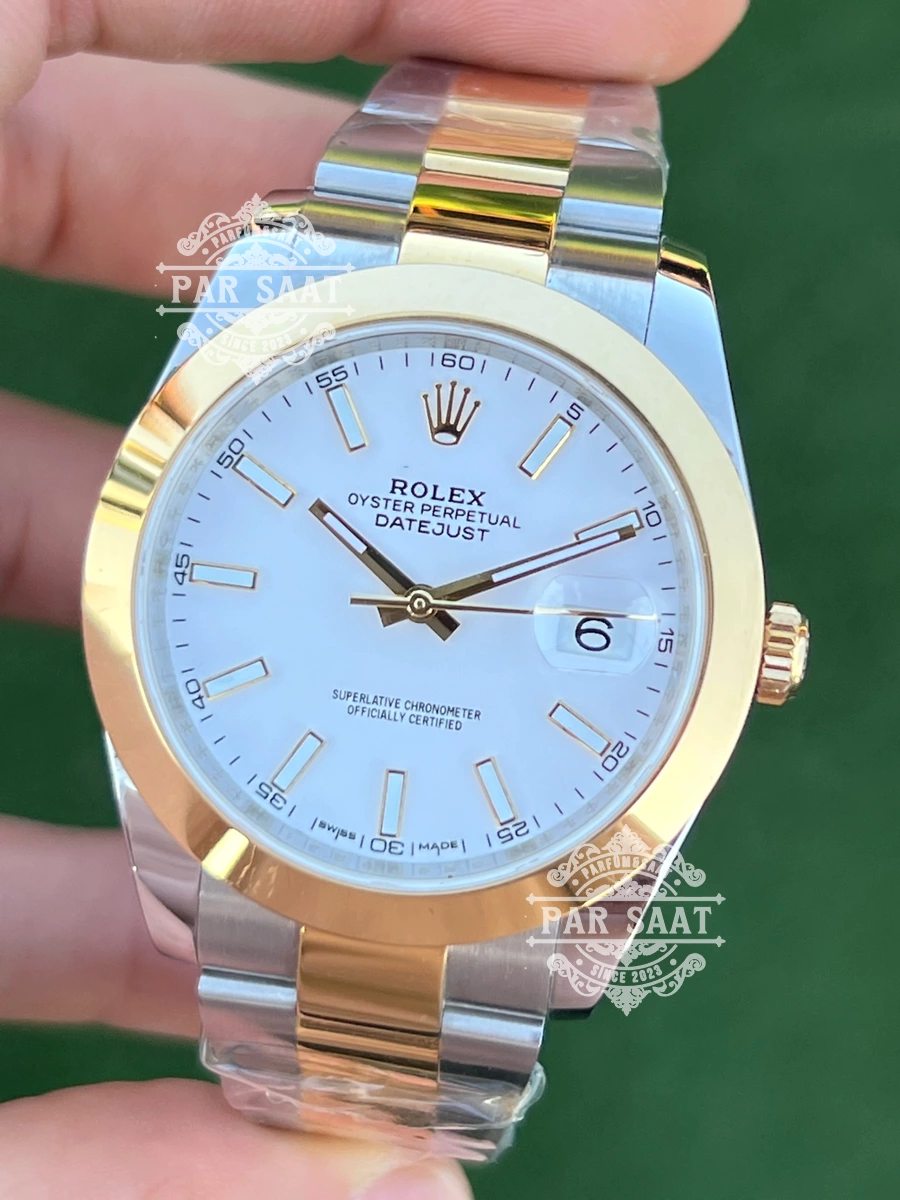 Rolex Datejust Beyaz Index Two Tone Smooth Bezel