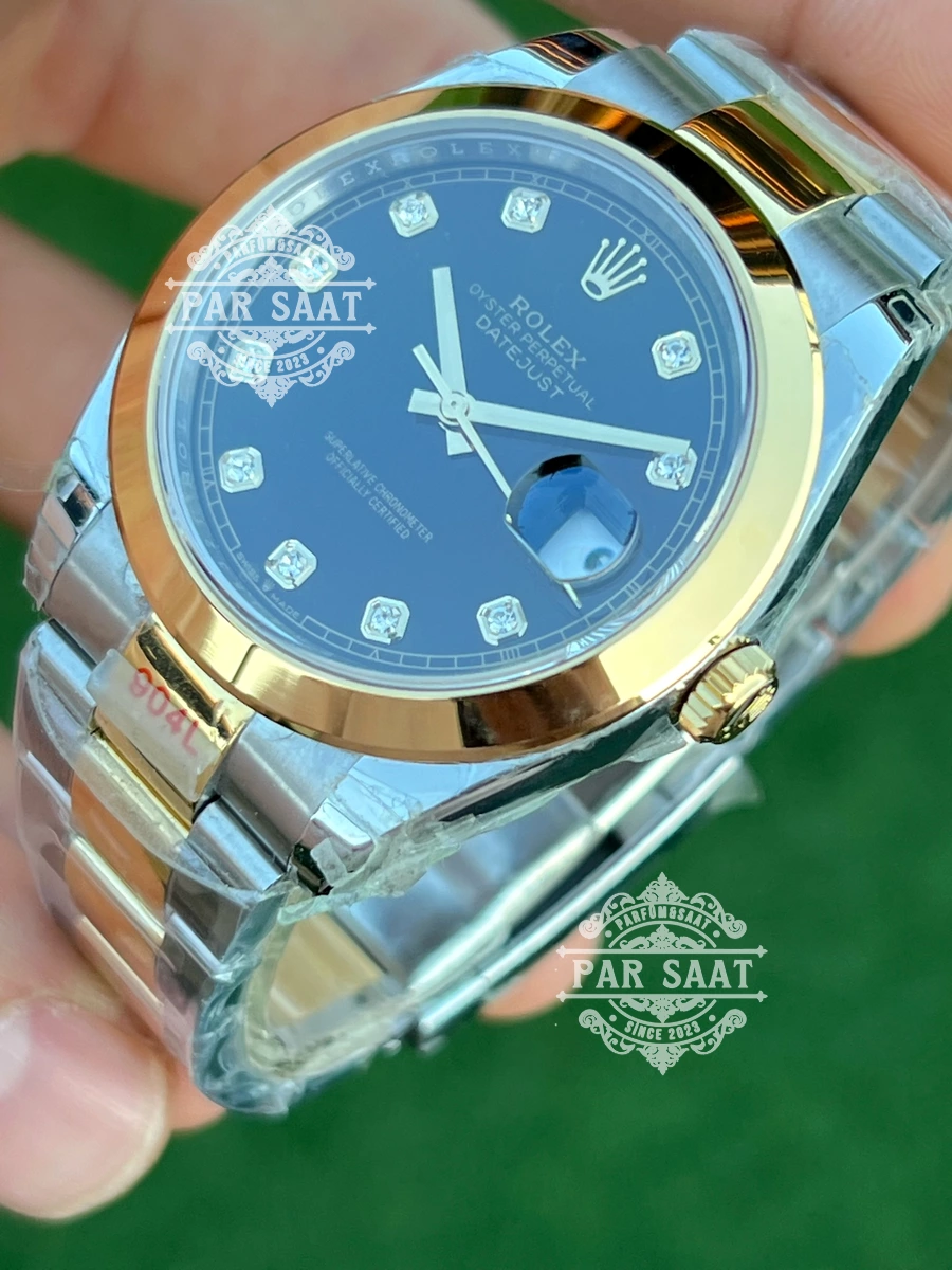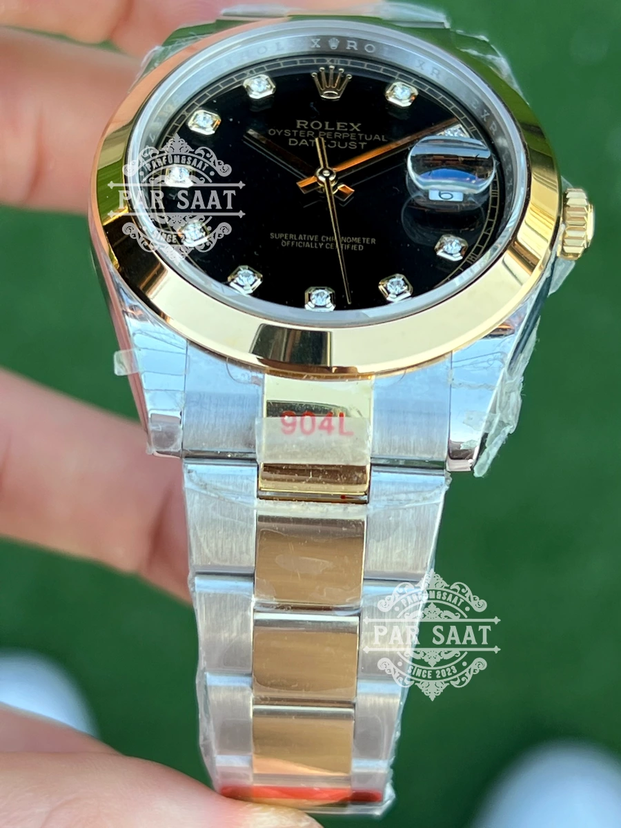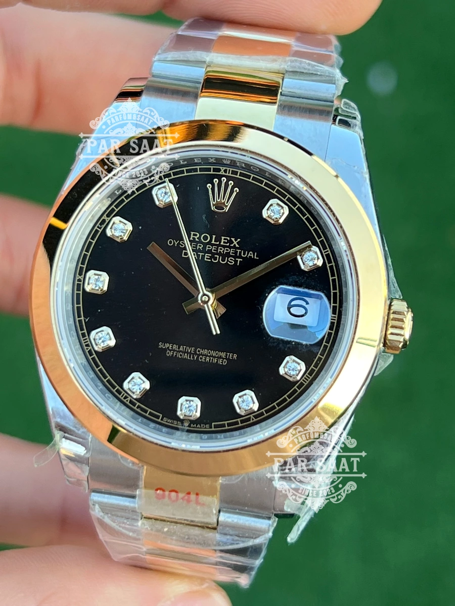 Rolex Datejust Siyah Two Tone Smooth Bezel