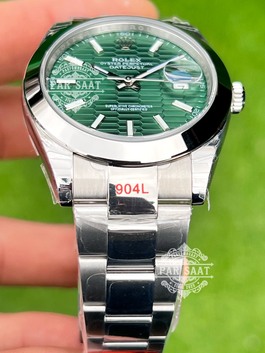 Rolex Datejust Yeşil Damalı Kadran Düz Bezel Jubilee