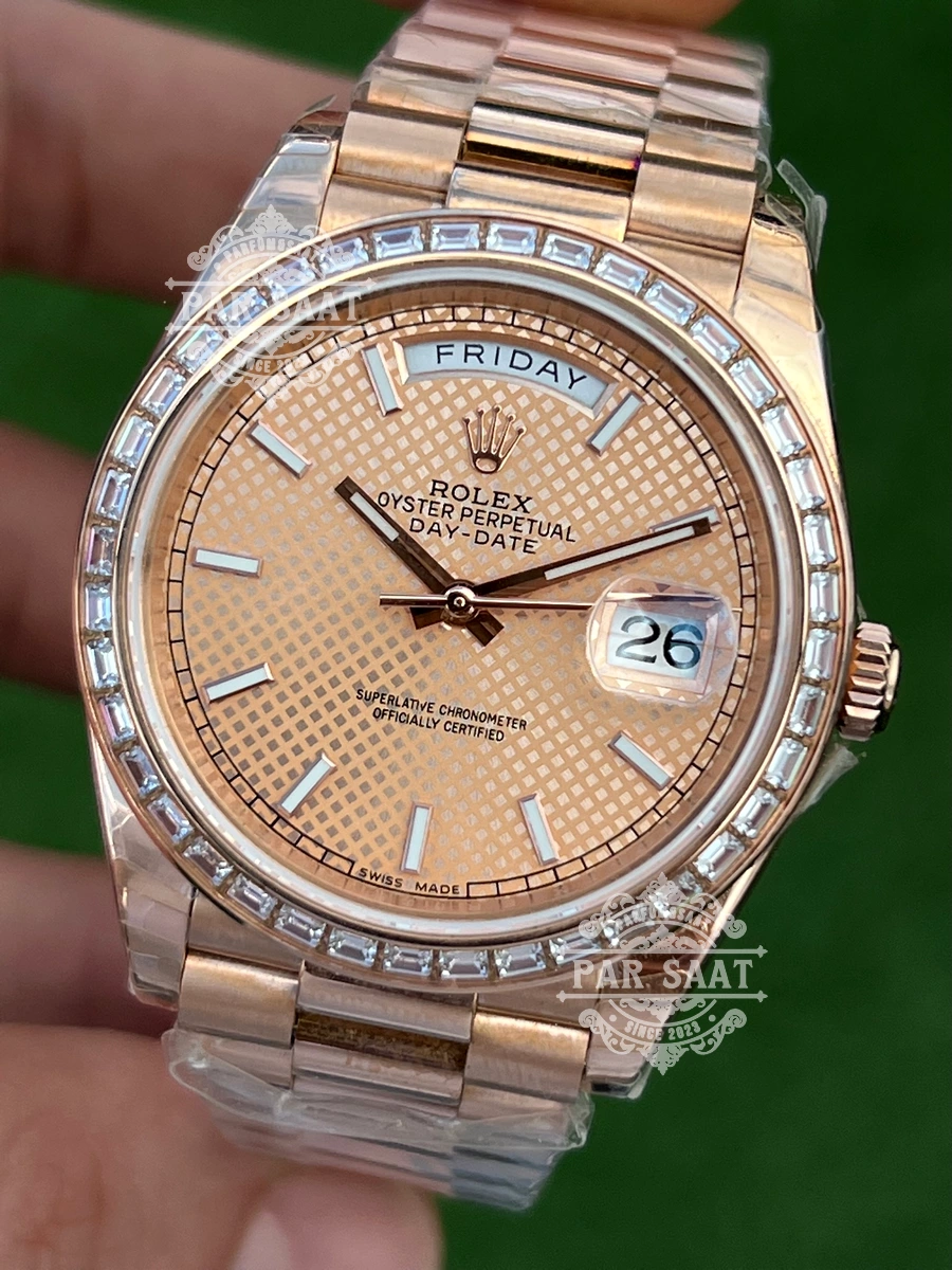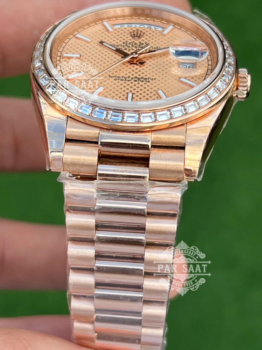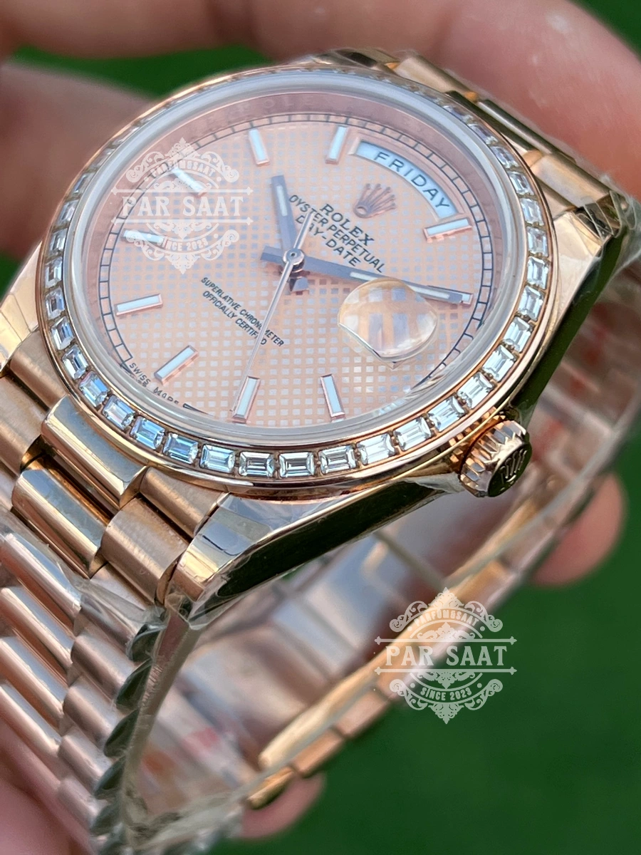 Rolex Day-Date Rose Gold Rose Kadran Taşlı Bezel